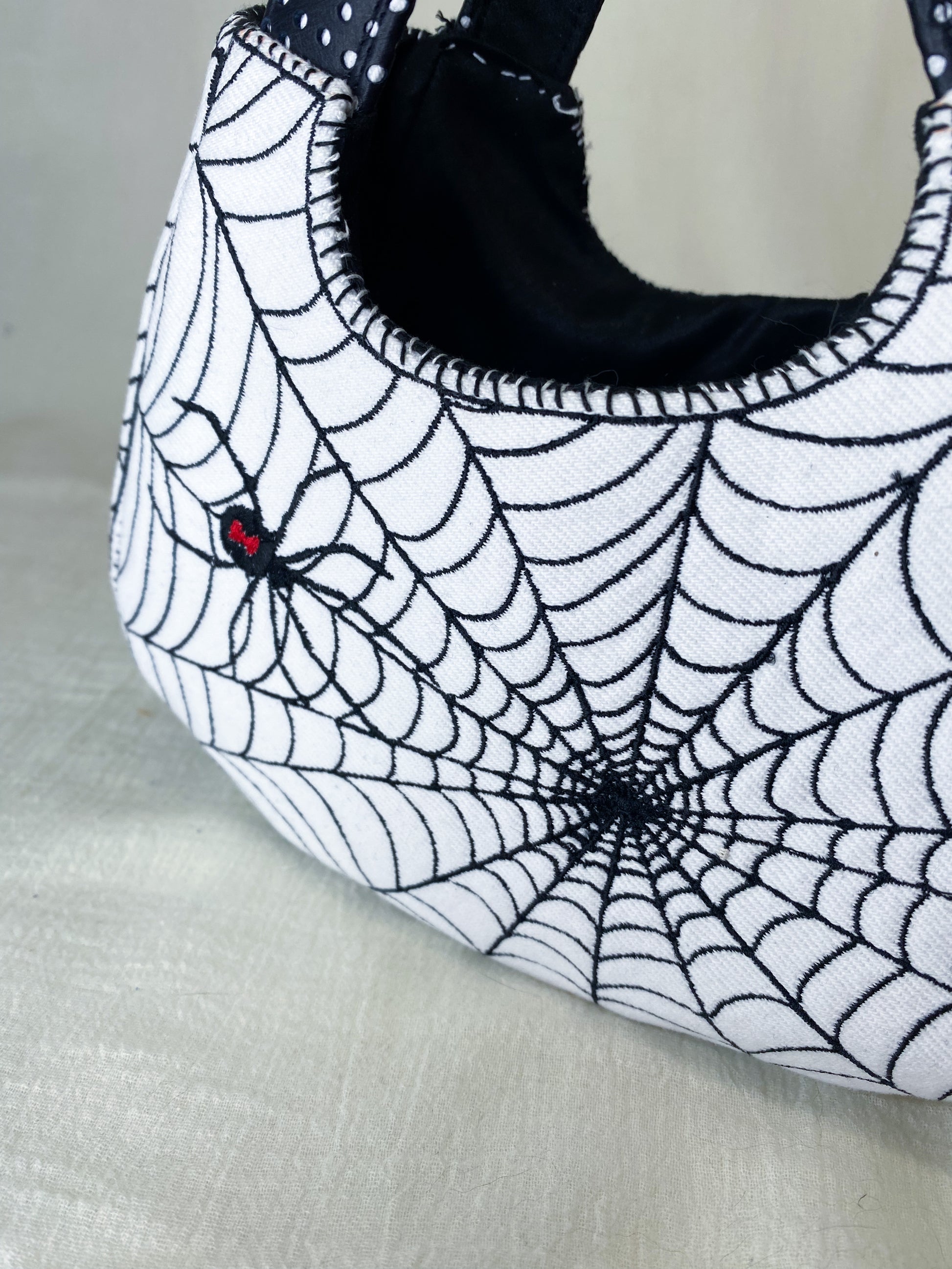 Black Widow Bite hand bag - denim bag with custom embroidered design